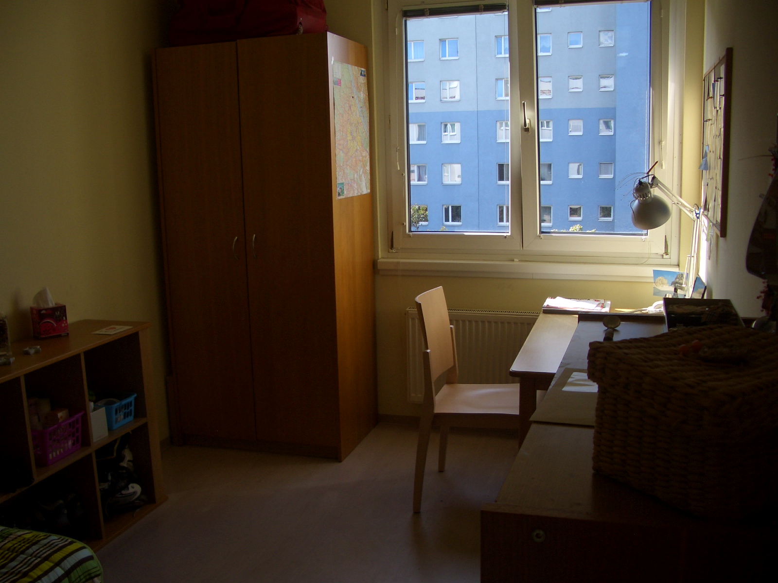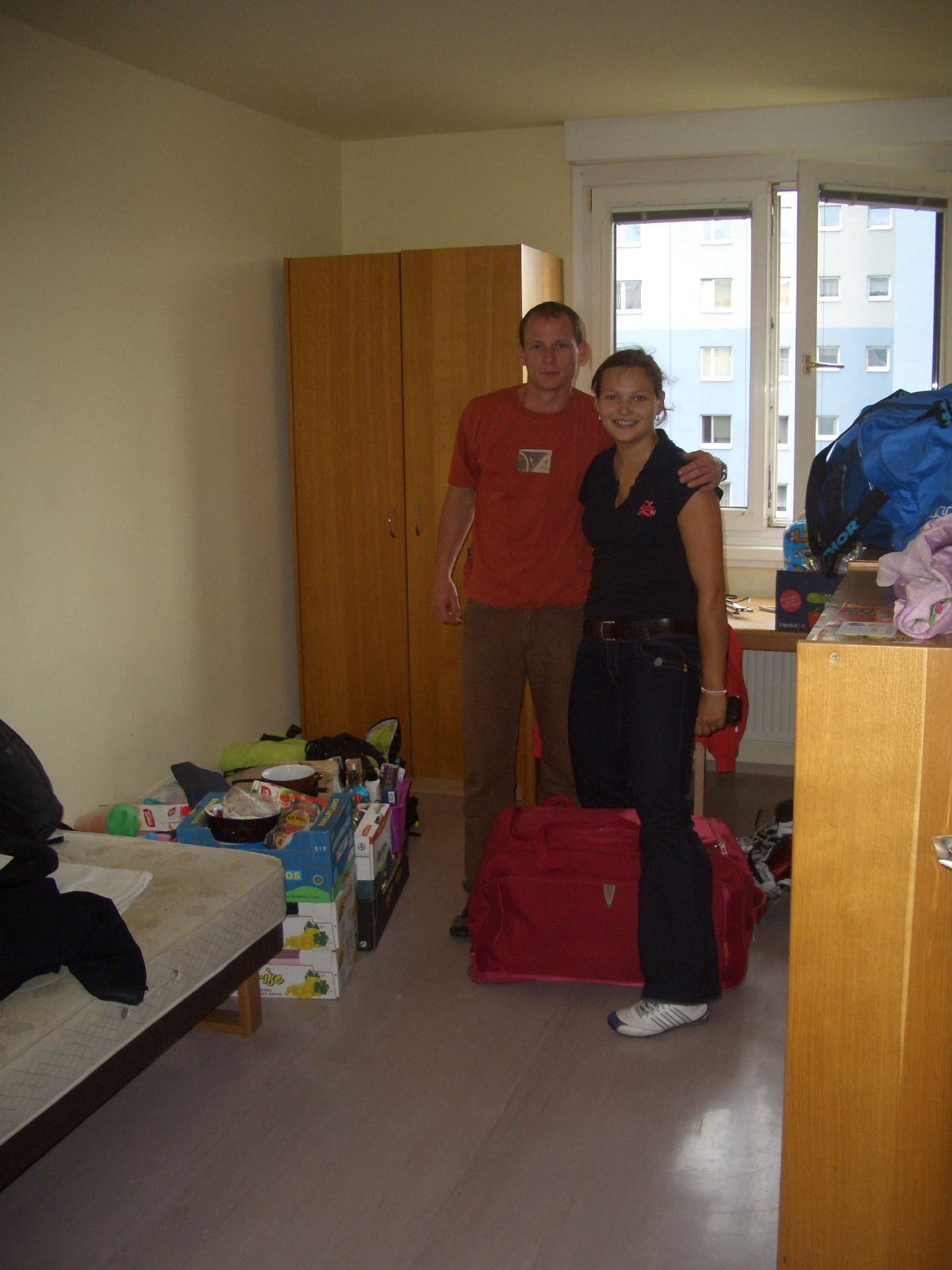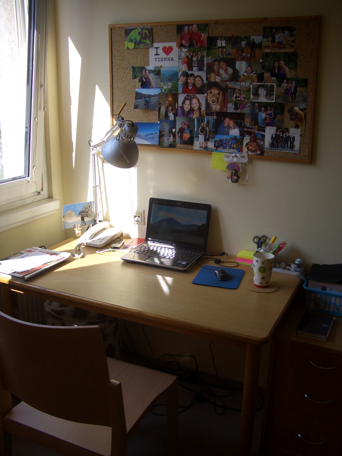 Po pár dnech uklízení a stěhování a tvoření nástěnky, abych se cítila jak doma se z holých zdí stal útulný kamrlík!!!